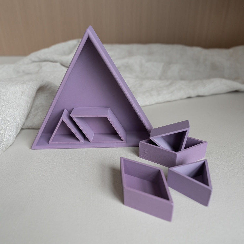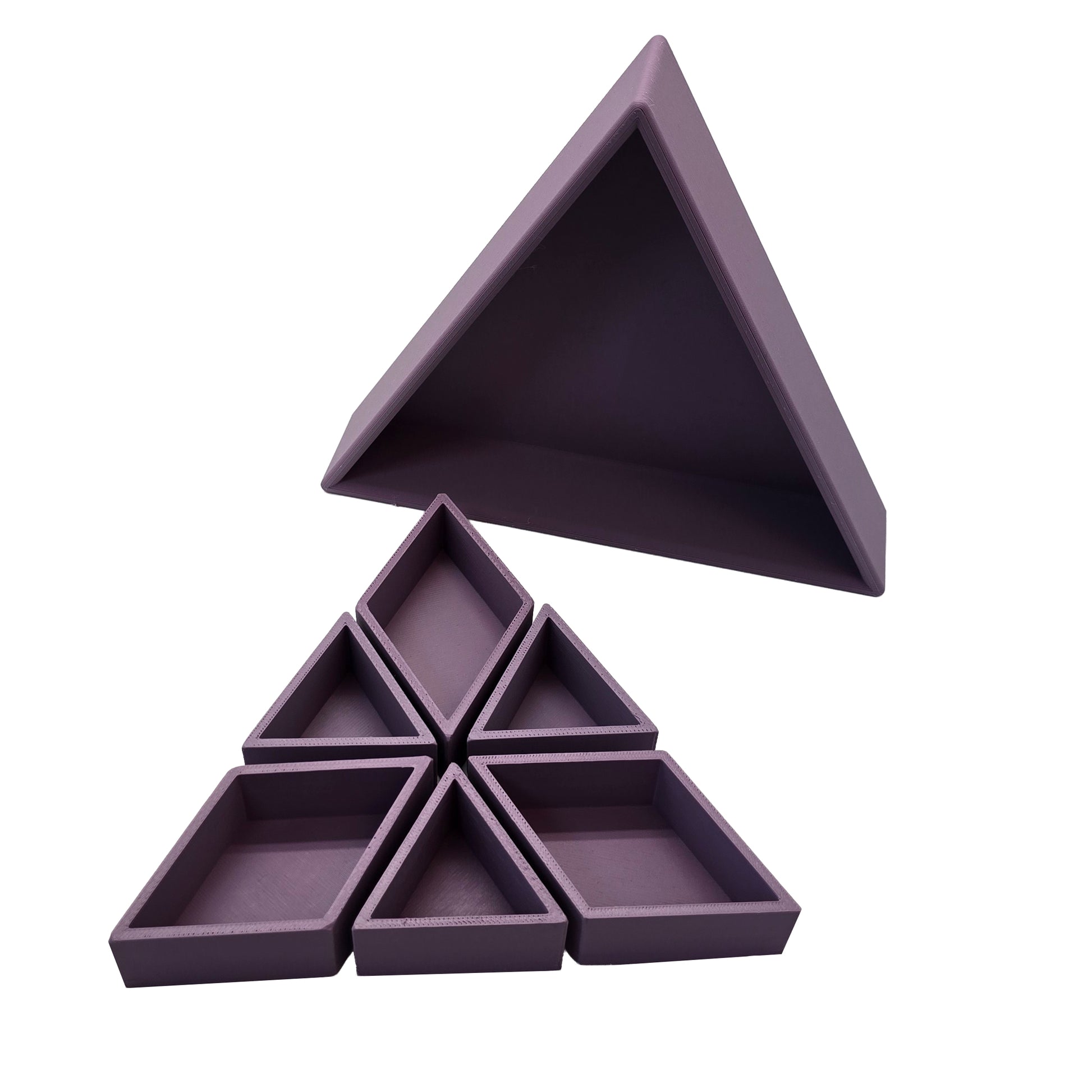 De vorm van de driehoek creëert een duidelijk en stevig vakje. Dat maakt het sorteren van materialen heel eenvoudig. Magic sand, speelrijst, kleine accessoires, stekers of mini speelgoed krijgen allemaal hun eigen plek.