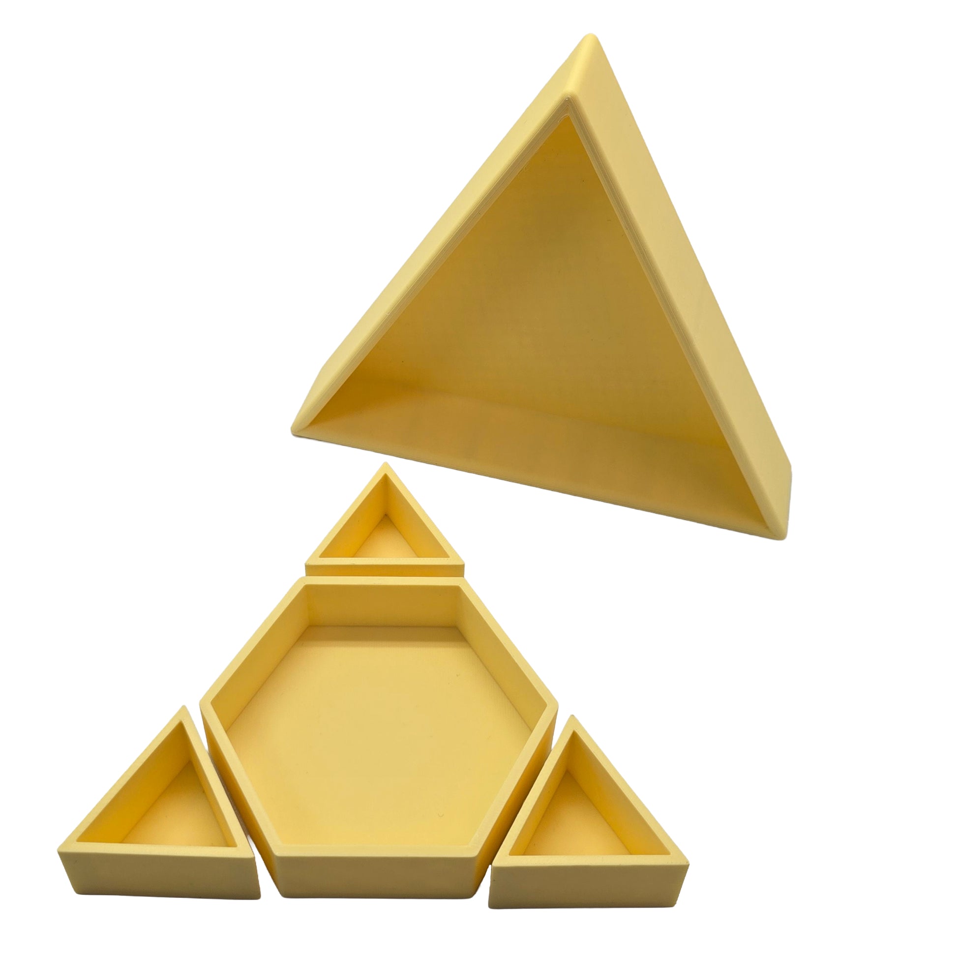 De vorm van de driehoek creëert een duidelijk en stevig vakje. Dat maakt het sorteren van materialen heel eenvoudig. Magic sand, speelrijst, kleine accessoires, stekers of mini speelgoed krijgen allemaal hun eigen plek.