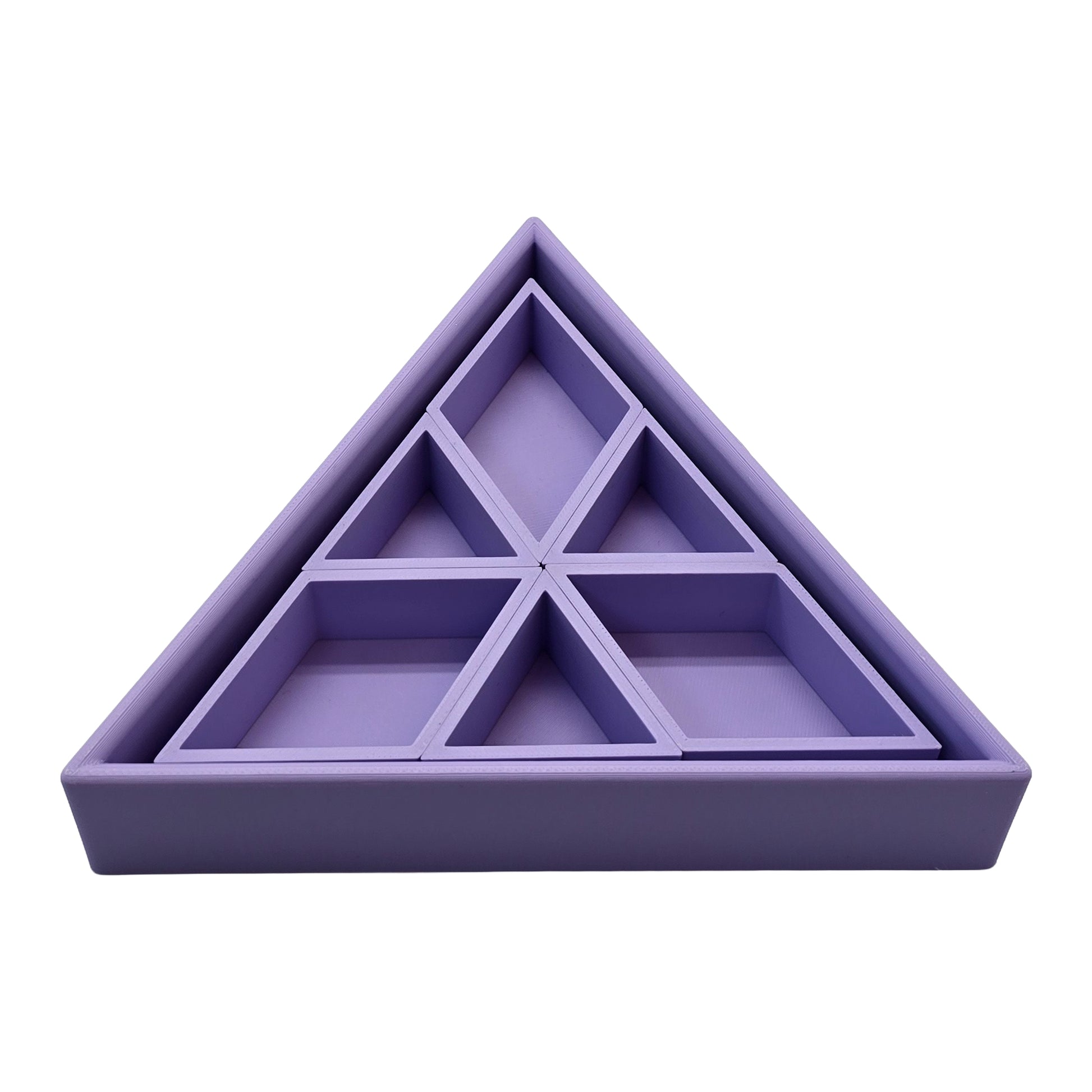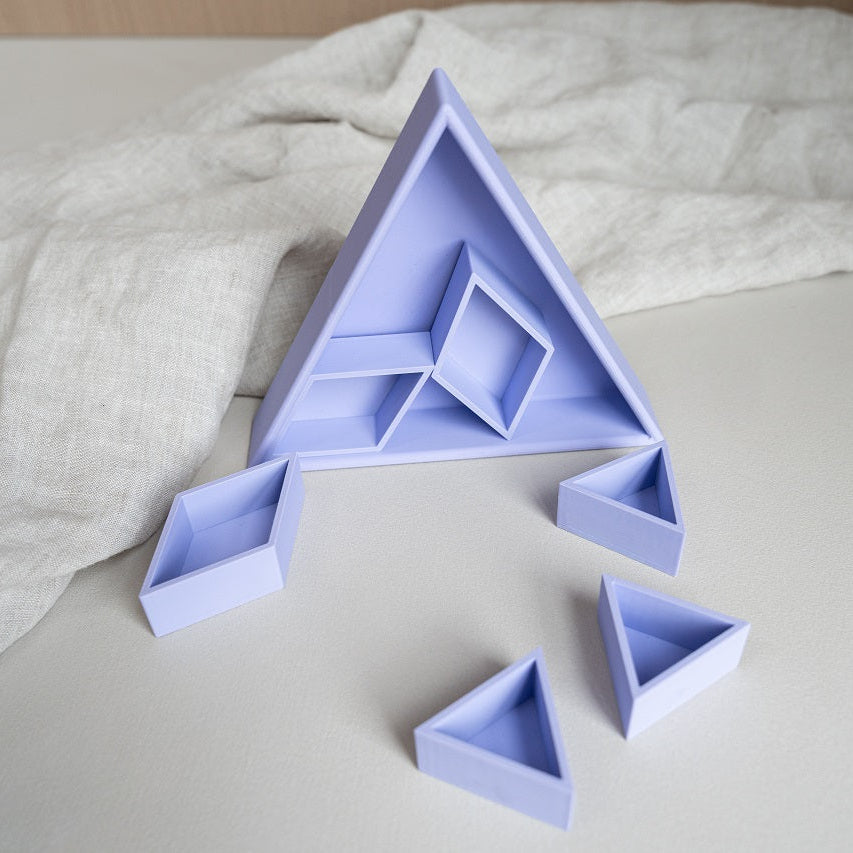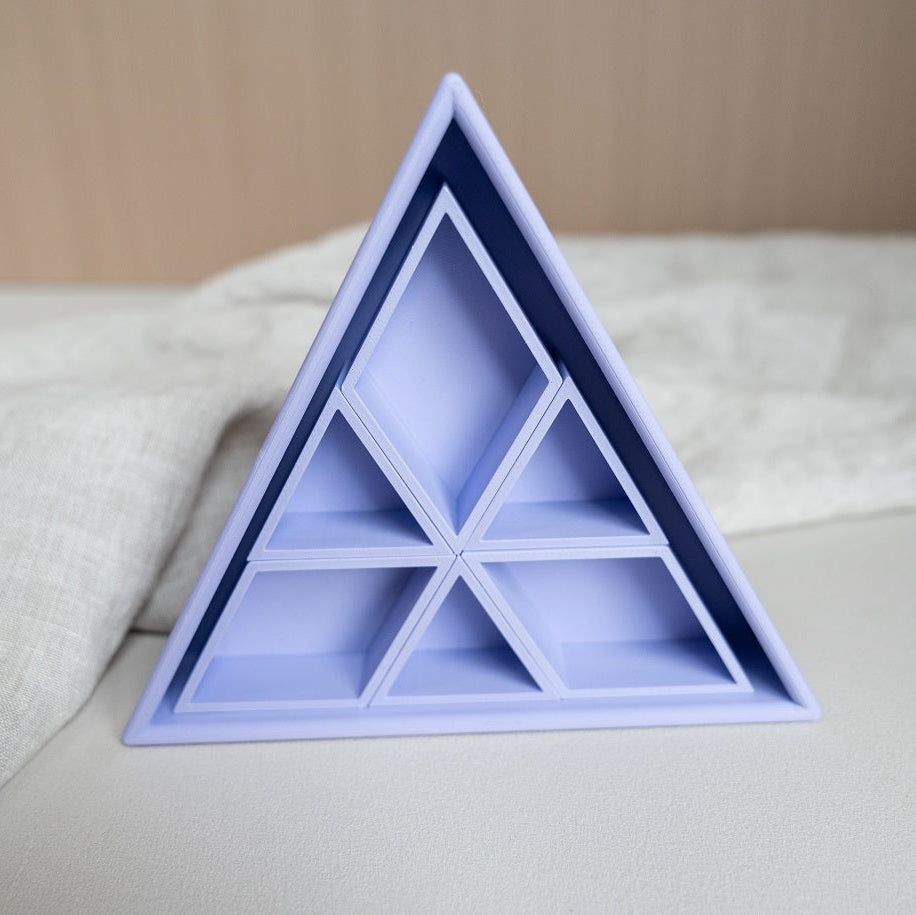De vorm van de driehoek creëert een duidelijk en stevig vakje. Dat maakt het sorteren van materialen heel eenvoudig. Magic sand, speelrijst, kleine accessoires, stekers of mini speelgoed krijgen allemaal hun eigen plek.