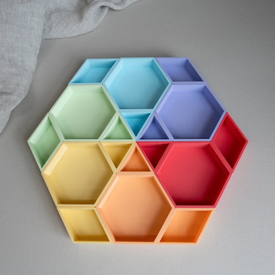 De stevige bakjes zijn geschikt voor het sorteren van speelrijst, magic sand, stekers en kleine accessoires. Door de kleuren en letter/cijfercombinaties samen te gebruiken, kunnen kinderen eenvoudig kleine mandala’s leggen en patronen ontdekken.