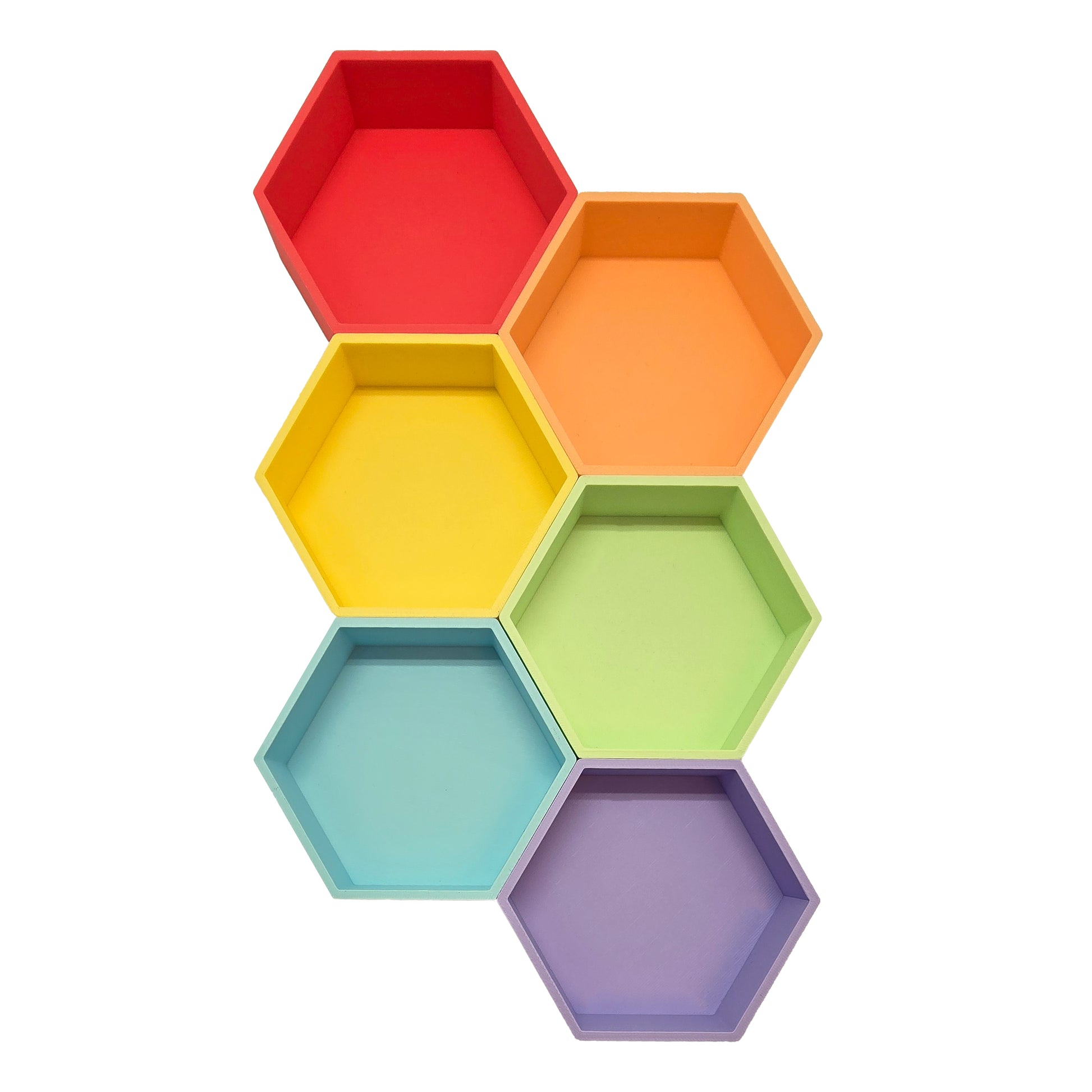 De mandigo kwartcirkel bakjes zijn ontworpen om materialen overzichtelijk te sorteren tijdens sensorisch spel. Elk bakje heeft dezelfde vorm en kan eenvoudig gecombineerd worden met andere kleuren. Ze zijn verkrijgbaar in zowel regenboog- als pasteltinten, zodat je precies het kleurenpalet kunt kiezen dat past bij jouw speelhoek of thema.