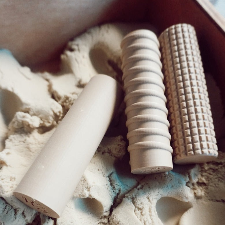 Met deze milieuvriendelijke rollers kunnen kinderen niet alleen genieten van magisch spelen met magic sand of klei, maar ook hun fijne motoriek ontwikkelen. Laat je kleintje betoverende texturen creëren en unieke sculpturen vormgeven. De rollers zijn perfect om kleine handen te helpen bij het ontwikkelen van coördinatie en verbeeldingskracht.